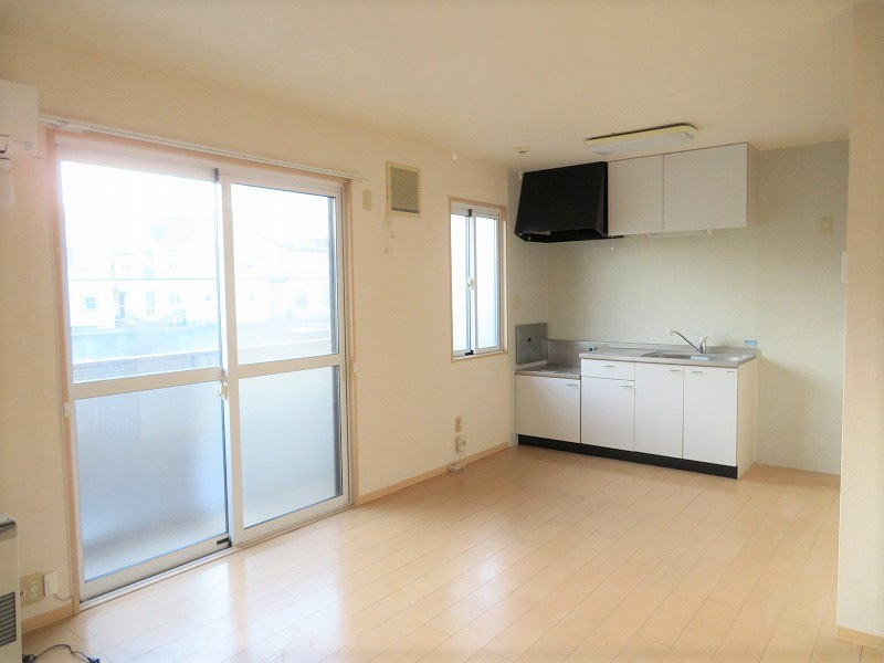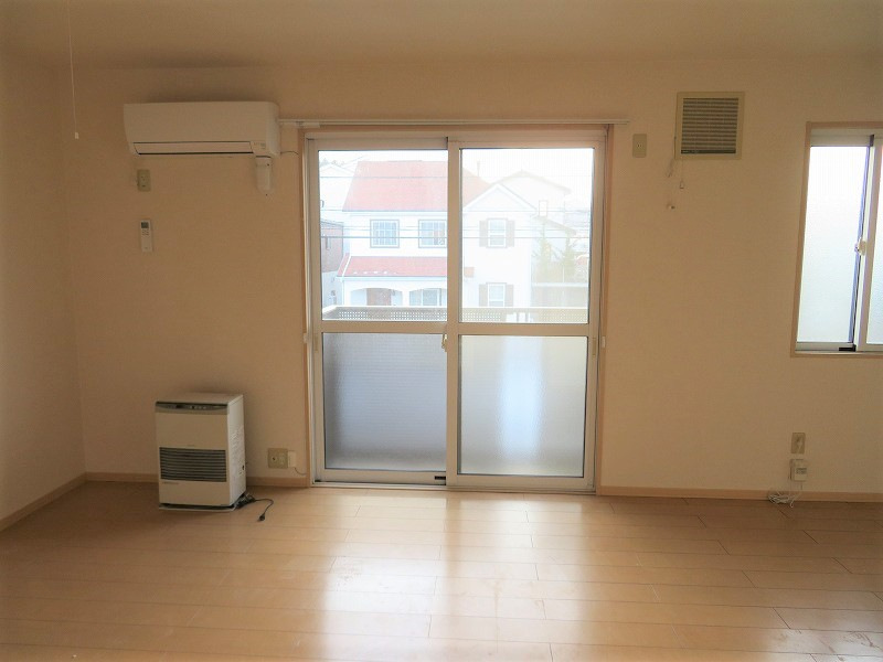 電話設置可、CATV、カメラ付インターホン、下足箱、システムキッチン、ガスコンロ設置可、給湯、エアコン、灯油FF、照明器具、室内洗濯機置場、洗髪洗面化粧台、シャワー付トイレ、バス・トイレ別、シャワー、浴室換気乾燥機、物置、2台目駐車場、ウォークインクローゼット、バストイレ別、バルコニー