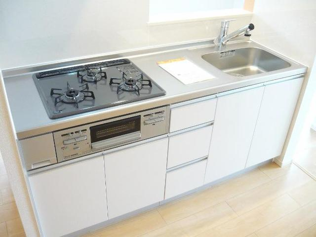 バストイレ別、室内洗濯機置場、エアコン、追焚バス、更新料無し、床下収納、BSアンテナ、下足箱、システムキッチン、角部屋、給湯器、物置、浴室換気乾燥機、シャワー、シャワー付トイレ、洗髪洗面化粧台、カメラ付インターホン、カウンターキッチン、複層ガラス、駐輪場、インターネット使用料無料、ウォークインクローゼット