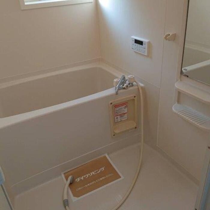 クローゼット、カメラ付インターホン、下足箱、カウンターキッチン、給湯、エアコン、灯油FF、照明器具、室内洗濯機置場、洗髪洗面化粧台、シャワー付トイレ、バス・トイレ別、シャワー、追焚バス、浴室換気乾燥機、物置、2台目駐車場、バストイレ別、電話設置可、BSアンテナ、バルコニー、駐輪場、インターネット使用料無料
