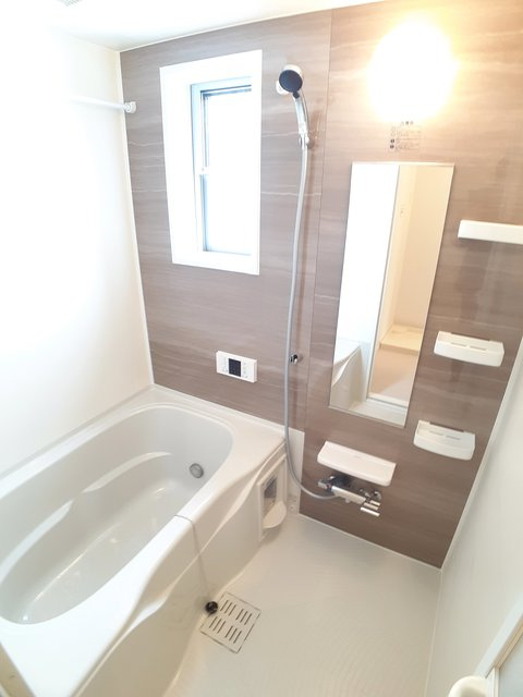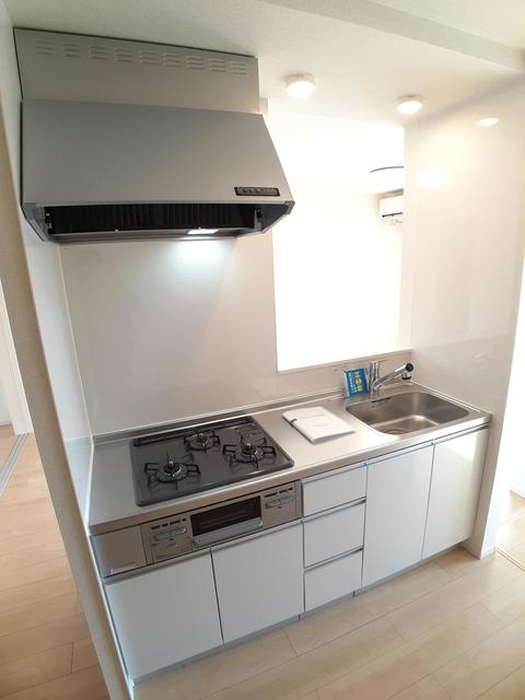バストイレ別、室内洗濯機置場、エアコン、システムキッチン、ウォークインクローゼット、床下収納、下足箱、BSアンテナ、追焚バス、宅配ボックス、カメラ付インターホン、照明器具、浴室換気乾燥機、物置、複層ガラス、洗髪洗面化粧台、シャワー、シャワー付トイレ、カウンターキッチン、インターネット使用料無料、24時間緊急対応、駐輪場